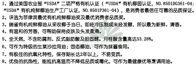 椰子油有强力的清洁效果,可清洁皮肤内之污垢,而且有机天然纯鲜椰子油,绝对不伤肌肤,可用于卸妆,清洁,外敷可保护皮肤不受紫外线伤害。