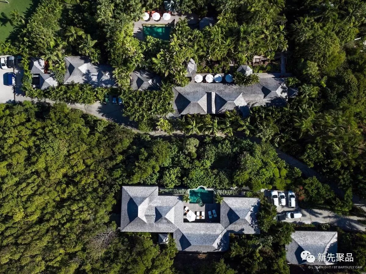 庄园的两栋别墅隐藏在椰子树丛后面,若隐若现恍若仙境。