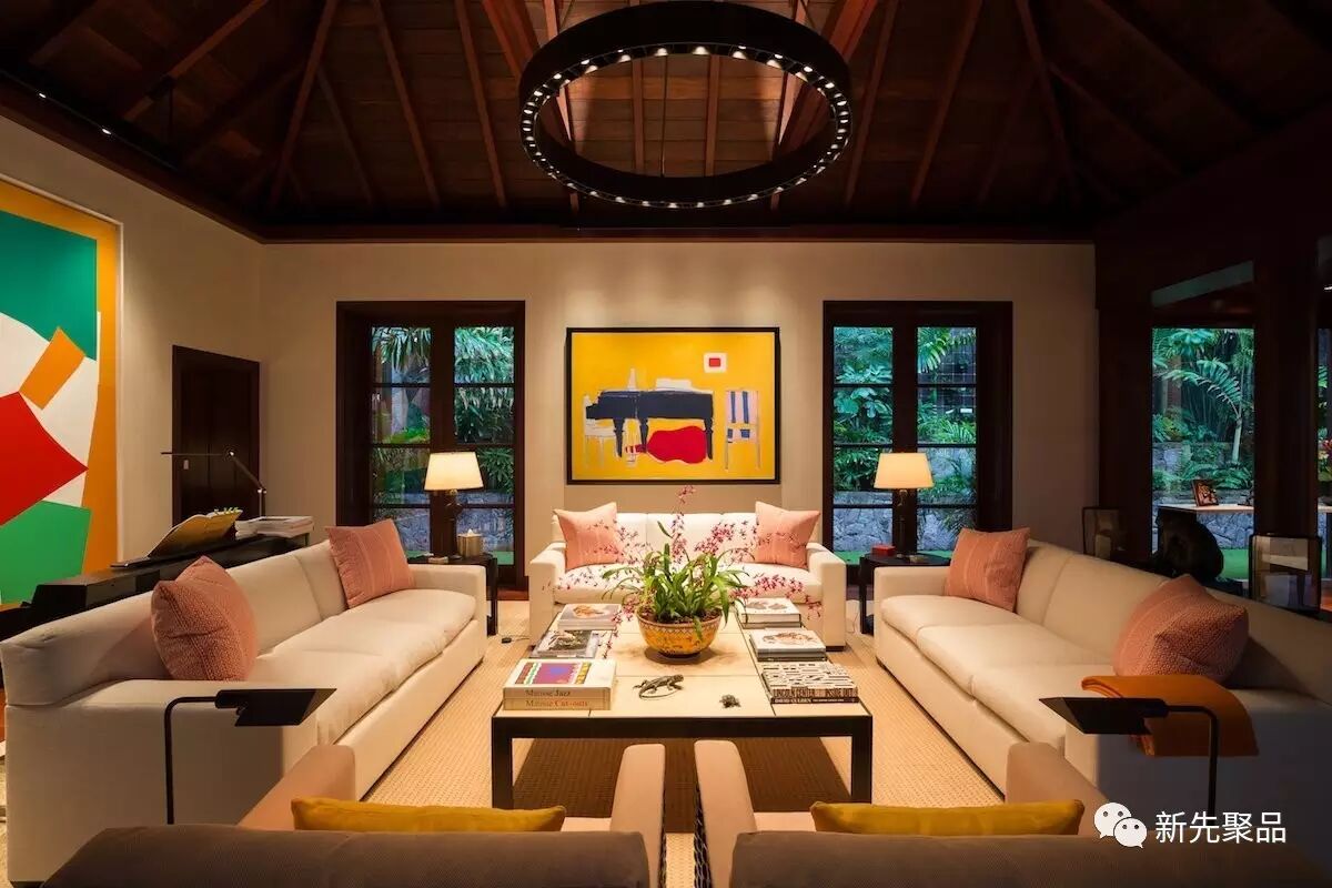 整座庄园内部均是充满异国情调的巴西木材装饰。