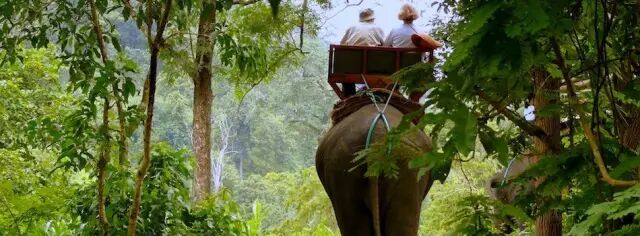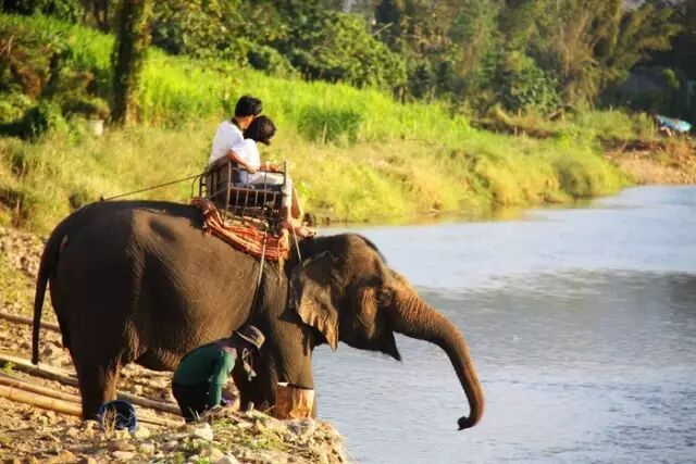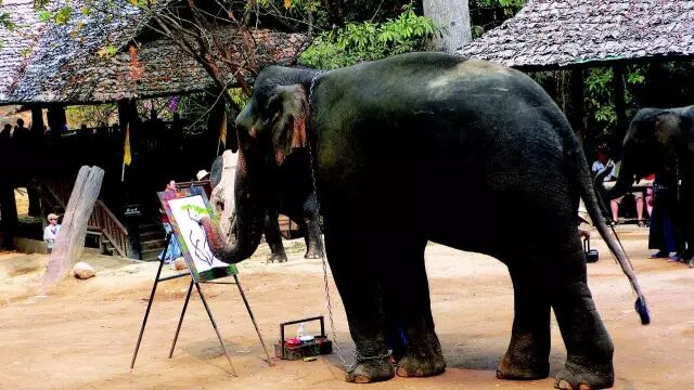 在泰国,大象是国宝却也是私有财产,我们的熊猫舒舒服服在自然保护区被照顾,而清迈的大象不得不被主人拉到营地里 " 接客 "。早年用于搬运柚木的大象,在 " 柚木砍伐禁令 " 颁布后,便成为了当地旅游业发展的支柱。清迈市郊有大大小小几个大象营,提供大象踢球、画画等等一系列的表演,之后游客还可以骑上一层楼高的大象,绕着营地走上一圈,摇摇晃晃的感觉还是很惬意的。