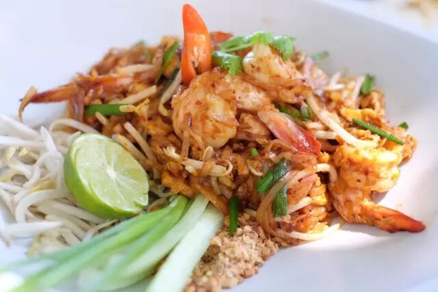 这也可说是泰国菜里的招牌菜,先将河粉用甜酱炒得甜甜咸咸的,之后在旁边摆上碎花生、辣椒粉、花生粉以及豆芽菜等,要享用之前先把所有的料全部拌匀,再加上几滴柠檬汁,入口后弹牙的河粉与青脆的豆芽,交错出绝妙的口感,在花生粉的香气中,柠檬汁更将整道菜的鲜甜滋味给缓缓带出,最后出现的才是辣椒粉的劲道。通常这份料理在泰国比较常见,因此大餐厅小馆子里都可以点得到!