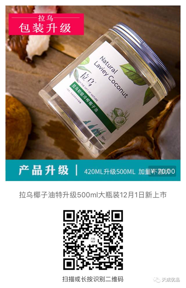原包装420ml的椰子油,现新包装升级为500ml,加量不加价哦!
