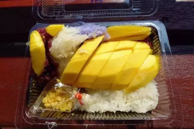 其实糯米饭无论在夜市、水果店还是餐厅都可以吃得到。混合着椰浆的糯米和酸甜的芒果在一起的味道真的很奇妙,很香。