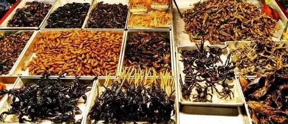 泰国夜市可以见到,不过我实在是没敢尝试。感觉啥子虫子都有,一个个亮得发光,看着跟活的一样。