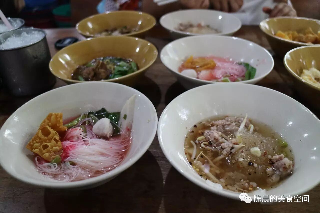 船面,很有意思的一种吃法。两块多人民币一碗,一口一碗有些夸张,三口一碗压力不大。单论味道,远远不如广州的云吞面,香港的烧鹅濑或者潮汕的牛肉粉,最大的乐趣,大概莫过于看着高高摞起一打汤碗的成就感吧。
