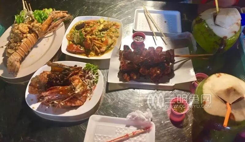 如果你是海鲜控,BANZAAN(班赞)海鲜市场一定要来走一走。里面卖各种海鲜,而且都是活的很新鲜。这里也是要砍价的,因为非常多家竞争的关系,所以砍到差不多他们就会答应。买好后上市场二楼,这上面是海鲜加工厨房,把刚买的海鲜拿给他们加工,选择自己喜欢的口味和做法,再按重量支付一定的加工费就能吃到美味的海鲜大餐啦!再配上一个大椰子,超幸福!就是这边的椰子卖的比外头要贵一半哦,这种满大街都有卖的东西价格太透明了。