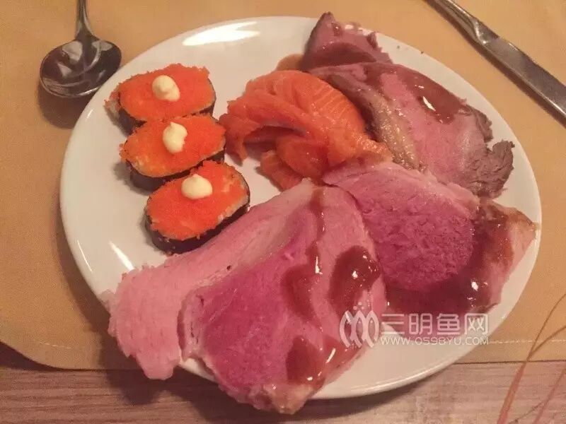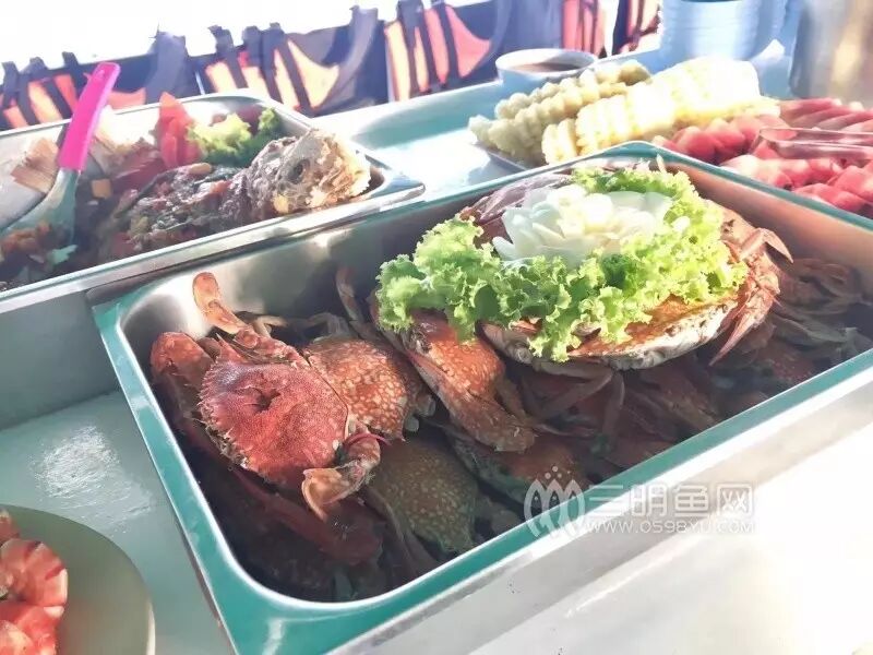 去攀牙湾回程时在船上吃的晚餐。龙虾是每人一只,其他菜品水果和酒水饮料都是自助的。一边吹海风看日落吃晚餐好舒服!