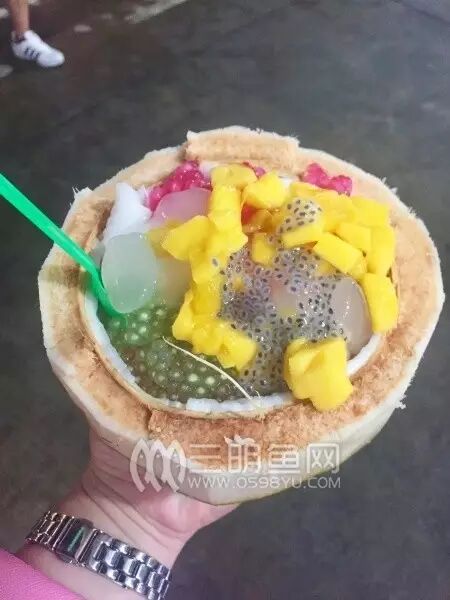 在泰国我都没喝白水的,由于水果便宜又很甜的关系,鲜榨果汁也很便宜,所以每天都是各种果汁饮品当水。而且都是小推车摊位,当着你的面现榨,除水果外就只加了白水和一点糖,好喝到不行。拿大家熟悉的甘蔗汁来说,这瓶现榨的甘蔗汁才7软妹,那种酒桌上大可乐罐规格的甘蔗汁居然才14软妹啊!便宜到哭。想想列东街上一杯都要10软妹了。