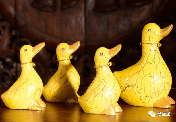 在九紫所到之处放4只鸭,为木雕的鸭,鸭为“甲木”,以木生九紫火。4为四绿木之数。