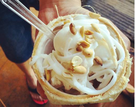 这是一个所有都想变成美丽女人的神奇国度,拥有迷人的热带风光以及各种独特美食的天堂-泰国。天下唯美食不可辜负也,泰国的饮食文化历史悠久,无论是正餐还是街边小食,都是让人看了馋涎欲滴。椰子在泰国的饮食界处处能看到他的身影,一整个椰子对半切开后,椰子与冰淇淋盛在一起,冰淇淋里面全是椰肉,味道醇厚。炎炎夏暑吃一个,心都融化啦。