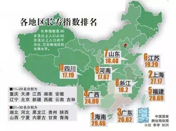 18、中国最长寿的地区(人均寿命80岁)