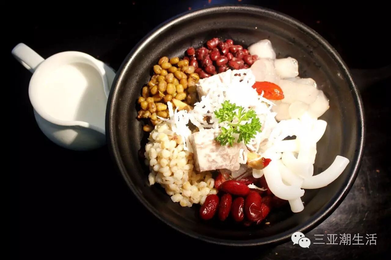 海南最具有特色的冰爽甜品(红豆,绿豆,薏米,花生,空心粉等制成,加入冰块后,那味道棒极了。