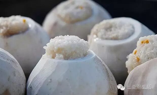 该特色是有海南优质糯米,天然椰肉和椰汁一同蒸熟而成,独特的做法,风味别具一格,实为难得的天然美食!