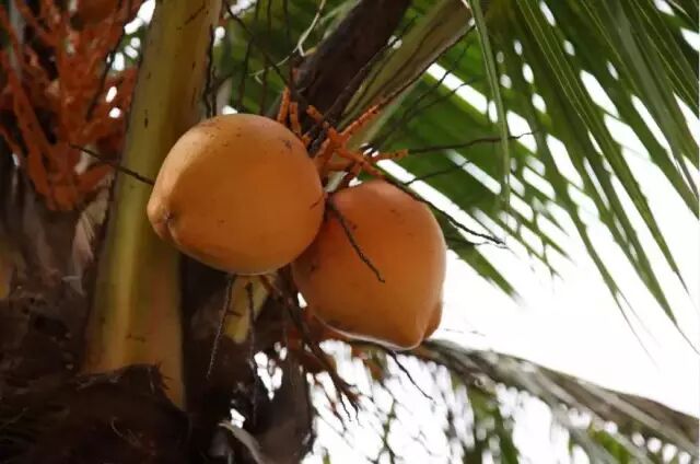 黄金椰比青椰少见,但三亚街头仍有很多。金椰外表通体黄色,跟青椰长老后的枯黄色有很大不同。金椰的汁水香甜,椰味浓郁,非常可口;椰肉很厚,色白如玉,芳香脆滑。价格也相对比青椰红椰贵。金椰相对圆,红椰比较长。