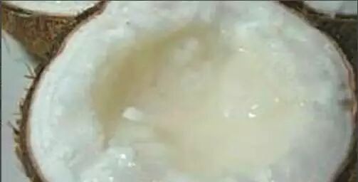 如果我们不去干扰椰子生长的话,椰子中会长出(如下图)一个大大的白色球状物。对椰子来说,那才是最珍贵的部分——胚。据说椰子的胚也有清甜脆爽的口感,但是要想吃到全靠碰运气。因为一来这种子活力要够好,二来要给它们一个良好的萌发环境。不妨买个成熟的椰子来照顾一下,体验一下椰子胚的特殊口感吧。