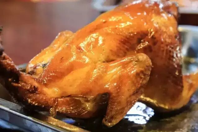 ▷加入各种秘制腌料腌十小时,然后慢慢吊烧的艺术烧至皮金黄色,刚出炉脆啵啵。