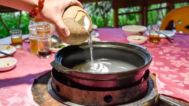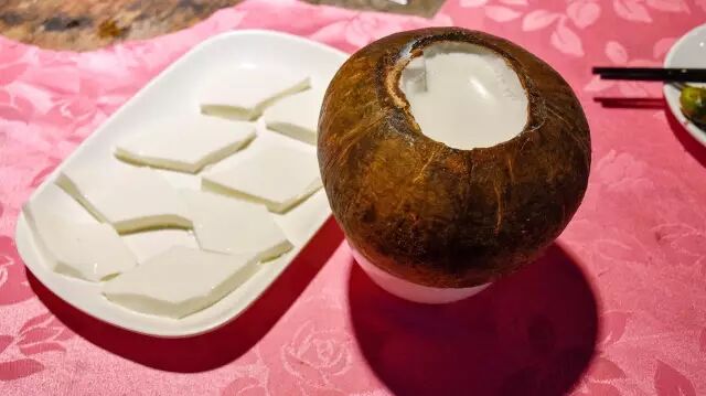 ▷椰子冻的正确打开方式是这样的:轻轻掀开椰子盖儿,用汤匙轻取果冻,送入口中,切忌急于咀嚼,而是要闭上眼睛,细细感受这舌尖上不可多得的乐趣。
