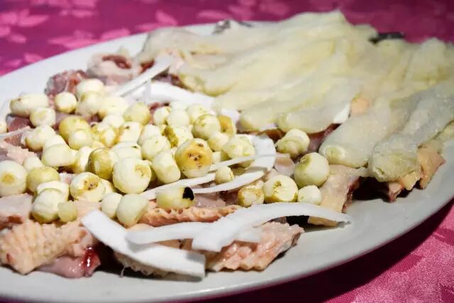 ▶珍珠马蹄:很少能在其他餐厅吃到,个头小小,每一粒吃起来都粉糯而有韧性、清新香甜,口感清脆。