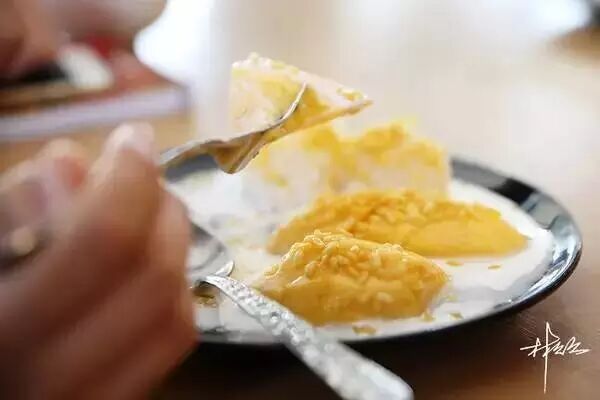 泰国的芒果大多都做成了芒果糯米饭,这一道名扬四海的甜点,糯米、芒果、椰奶这几样的组合,让人无法不爱,软糯的米饭加上汁水饱满的芒果,在浓郁的椰香里一咬一口香脆,感觉像是嘴里盛开了黄色的烟花一样美丽呢,非常好吃。