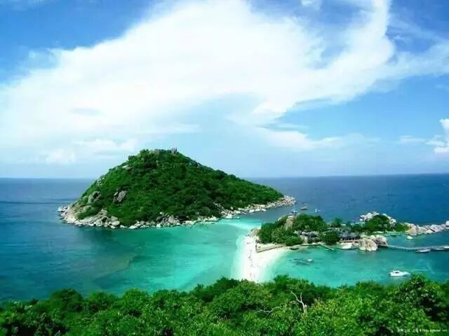 椰林海岛——苏梅岛:一片月牙般洁白的沙滩,环抱着被阳光晒得闪闪发光湛蓝的海水,随着波浪轻轻的晃动海面,海水被分出浅蓝至碧绿层次分明的色彩。这就是苏梅岛,海滩众多、水清沙白、景致迷人