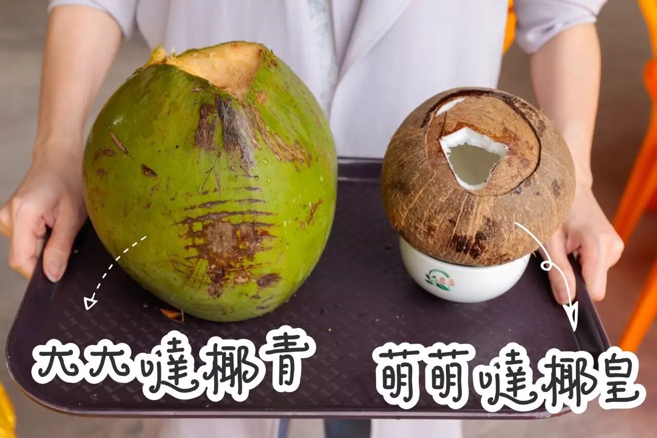 椰青嘅汁液更解热生津,甜度较淡;椰皇为椰青嘅2.0成熟版本,汁液更加清甜,两者结合,天衣无缝!