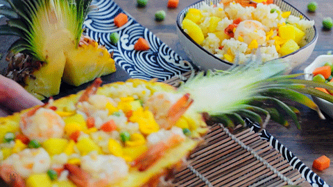 炒好的米饭用菠萝壳装即可食用