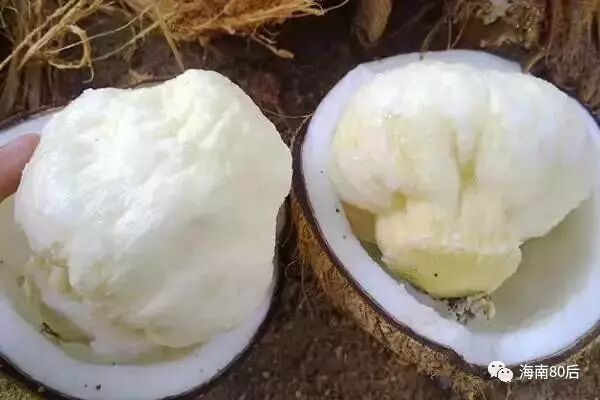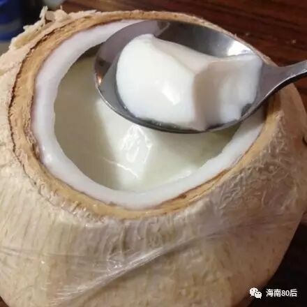 这是一个“怀孕”的椰子。其实,椰壳里躺着的是圆圆的椰子胚胎,”椰子芯“,它吸收了椰汁,有着比椰肉还美味的浓浓的椰奶味道。