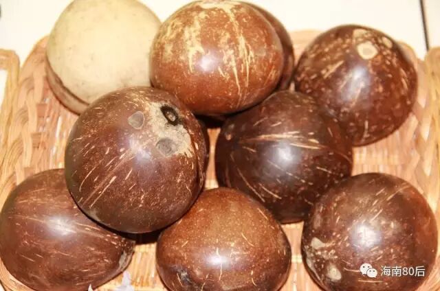 摇:用手摇,若水声较响,则汁少,椰子老,椰肉厚;反之,则汁多,椰肉薄。