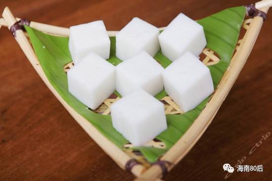 海南人称为“燕粿”,外面用椰叶或香蕉芭蕉叶裹成,有椰丝花生馅和椰丝芝麻馅,椰子的香味,糯米的软糯,让人回味无穷。