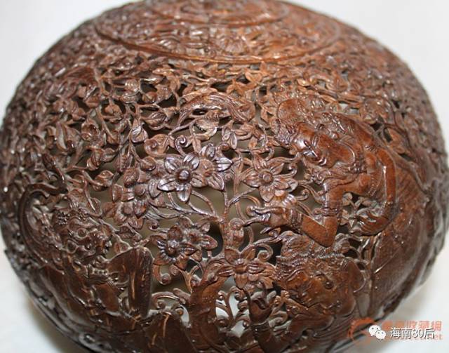 椰雕是海南岛的特产之一,是以椰壳、椰棕、椰木为原料,用手工雕刻成各种实用产品和造型艺术品。椰雕因旧时官吏常以它进贡朝廷而得“天南贡品”之誉。