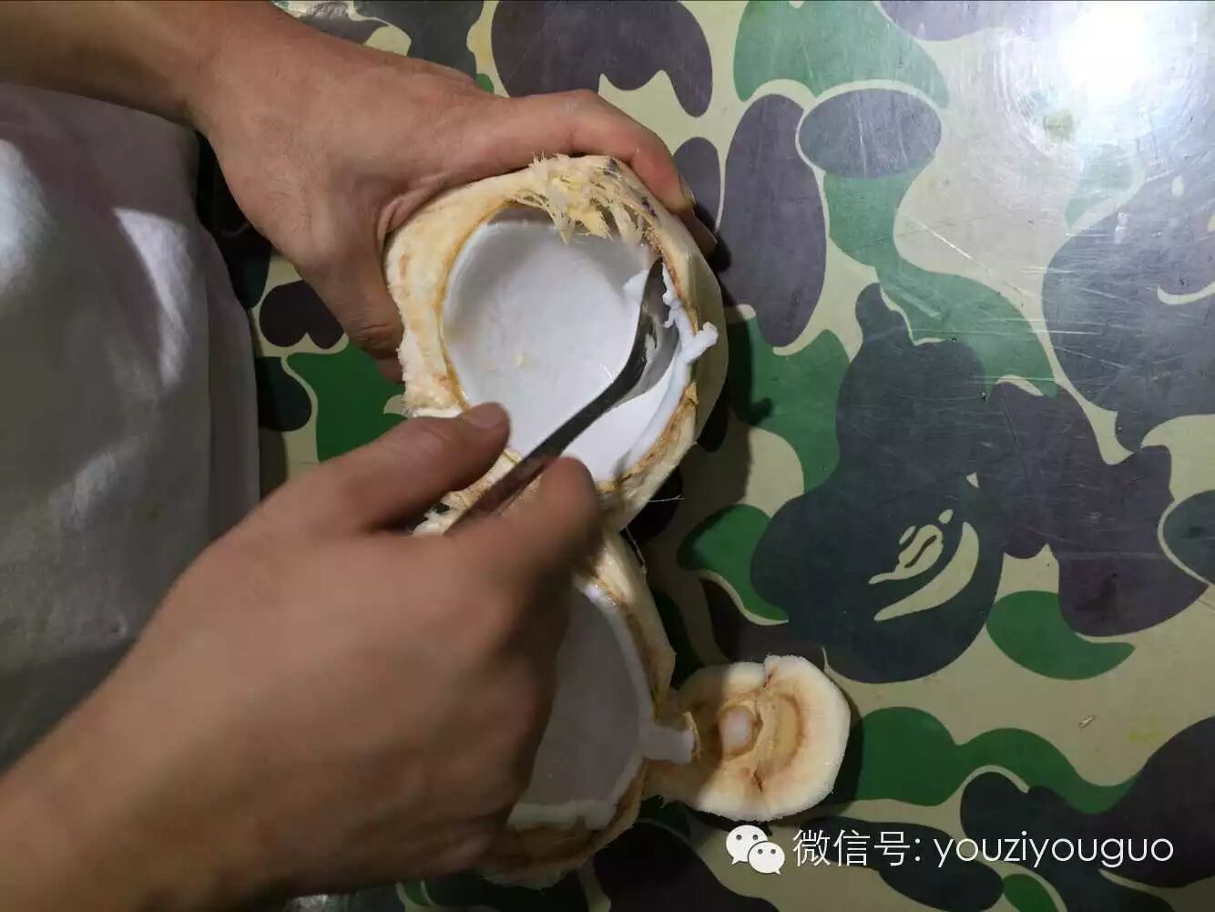 天气那么热,我只能教你怎么解暑吃椰子!另有极限特价等着你! 2023-04-19 23:50:29 先来做做特价,新疆1号蜜瓜极限特卖35/箱(22斤),这个价格你还不买点吃吃,那你就真是错失机会了!鲜嫩的椰子,夏天应该来几罐放在冰箱里!然后用刀子特别容易,就是这样撬开!好了,别以为喝完就算了,你一定不能就随手扔了!好椰子就可以这么吃,因为够鲜嫩!打开,里面天然的果冻一定还会让你惊喜,那个器具随便刮下来就吃!特别是冰冻过的,那滋味更加爽歪歪!