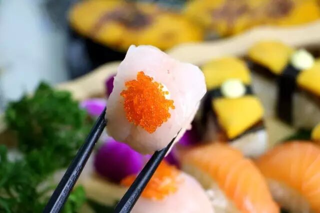 一般的蟹籽秋刀鱼都是把蟹籽放在秋刀鱼上面