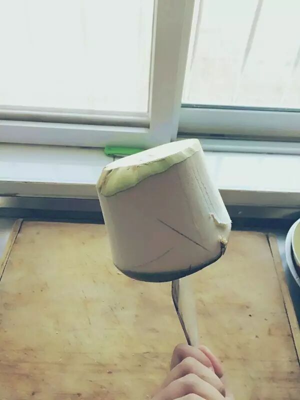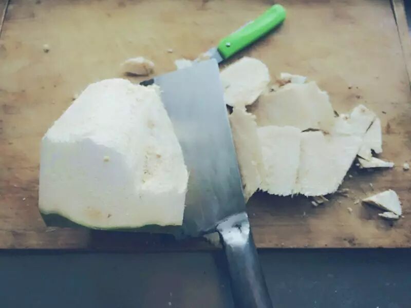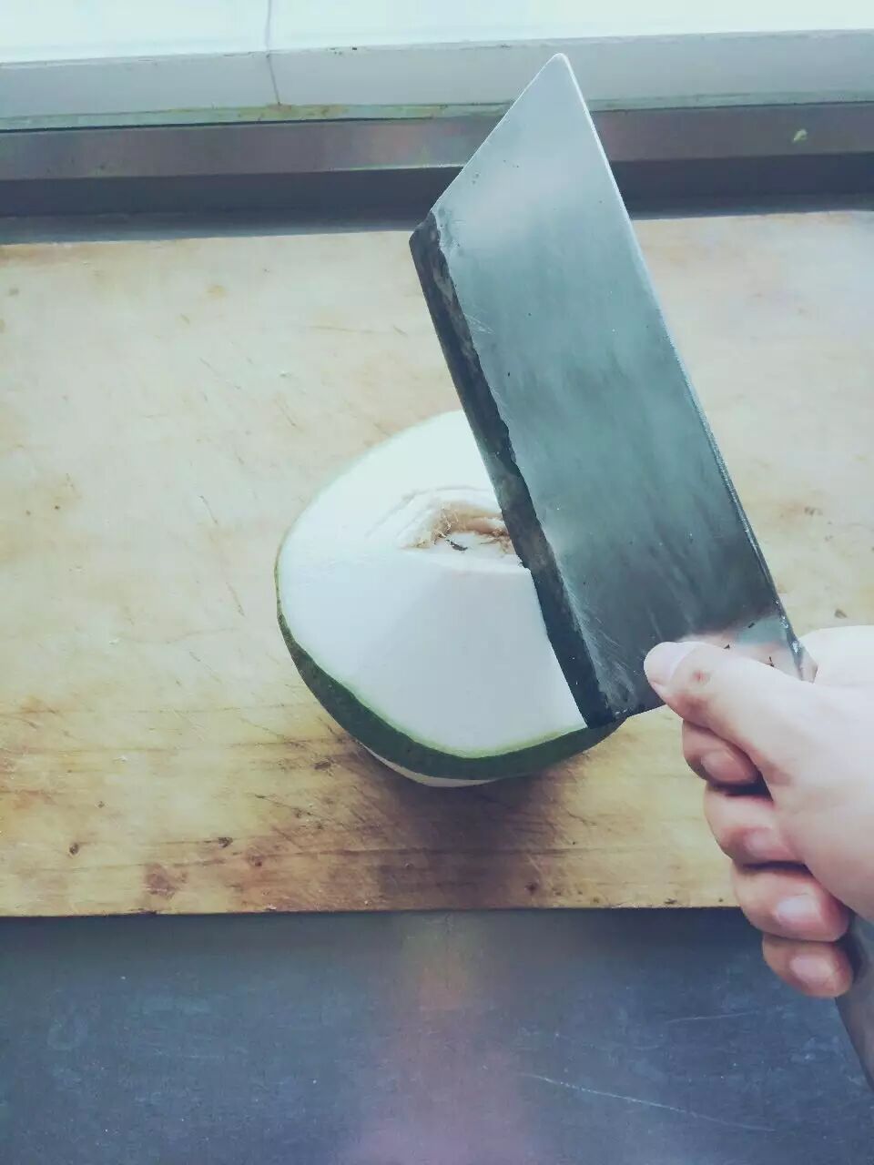 对于椰子的加工开始了,不过似乎并不是太顺利。