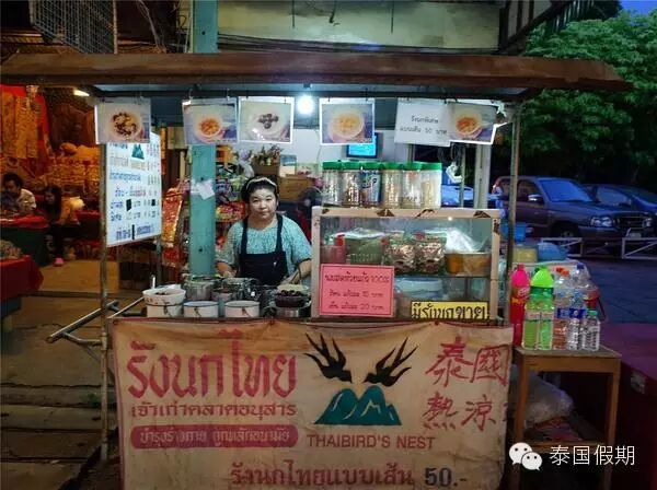 燕窝甜品又是另一大亮点,普遍100泰铢(合20块)一碗。这种铺子都是临街摆摊,有点只卖燕窝和白果两样,种类多一点的,清汤、姜汤汤圆、莲子红豆、多粿龙眼、白果牛奶,50泰铢左右。