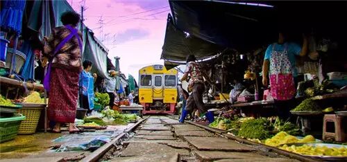 被称为世界上最危险的市场,在这里你可以和火车亲密接触。在曼谷附近的夜功府美功镇上,每天会横穿集市中的八列火车让它闻名于世,被称为泰国的“七大奇迹”之一。火车没到的时候,小贩在两侧销售,你在铁轨上选购,而火车经过的时候,小贩会以超快的速度收起所有家当,等火车开过了之后,又马上恢复原样。