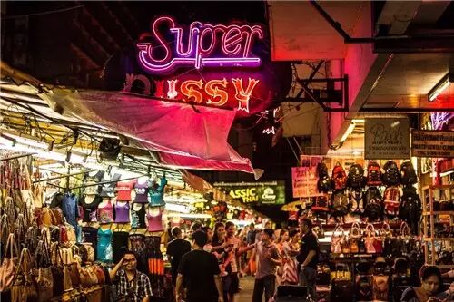 这是曼谷出名的观光夜市,以卖仿冒、盗版CD为主,还有一些仿冒的名牌,可以来这里享受砍价的乐趣。这个地方也是各式酒吧的聚集地,。