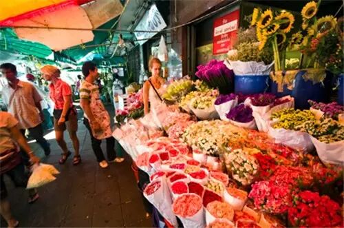 Pak khlong是当地最大的花卉市场,位于Yaowarat and Phahurat的唐人街,不仅种类多,价格还便宜。全天开放,任何时候想买都可以来买到。若你只是想欣赏一下这些鲜花,建议你早上四点过来,这时候大批鲜花运到,是花朵最鲜艳的时候。
