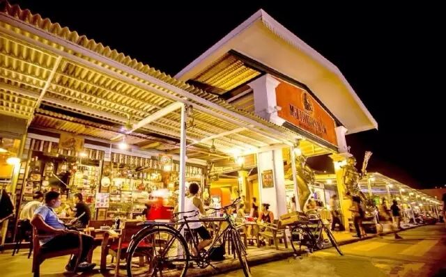 据说这是曼谷比较早开发的观光夜市,本地人很少,出售的商品主要是衣服、工艺品、皮包之类的,夜市两侧是各式的钢管舞酒吧,感觉主要还是针对旅游观光客开放的,面积很小,十几分钟就能转一圈,也许你会说那么这样的夜市不好玩,其实当中有不少好东西是其他地方没有的。Asiatique The Riverfront 河边夜市位于charoen Krung路上的河边夜市是曼谷最新最大的夜市。在泰国去过那么多夜市,这一个绝对是最高大上的。整个夜市坐落在仿古设计的“货仓”里,有中西式餐厅和泰式料理,泰国特色的工艺品小店以及泰国本土潮牌服饰等,两边是整齐现代的店铺和酒吧。旁边是清风徐徐的湄南河,到了晚上这里还会有木偶剧团和歌舞表演,曼谷有名的摩天轮也坐落在这里,可以登上摩天轮俯瞰曼谷夜景。