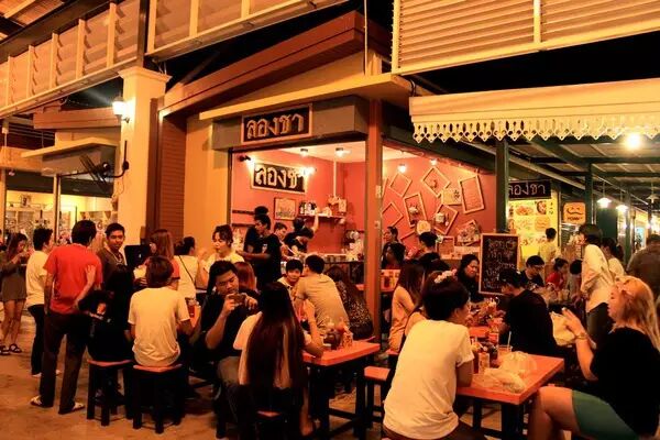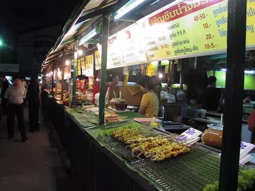 Huai-Khwang夜市算比较当地的夜市,来逛这个夜市的大多是泰国人。猪脚饭、泰式炒河粉、泰式炸鸡、炸鱼、泰式汤米粉等在这里都可以找到,味道也很地道。这里的泰东北菜也很有名,青木瓜沙拉、凉拌猪碎肉、瀑布烤肉、泰式小火锅都可以在这里尝试一下哟!这里大概会开到凌晨3、4点,所以来吃宵夜也是不错的选择哟!众所周知泰国人都没有自己下厨做饭的习惯,因此泰国的夜市是最具泰国特色的。真正物美价廉的夜市叫,很靠近耀华力中国城, 但只在周六和周日才开,10pm - 1am 左右。也是曼谷最大、最迫人、最草根的夜市。手指虎、刀械、婴儿玩偶竟摆在同一摊位贩卖。二手电视、冷气、洗衣机、计算机、工具零件也搬进夜市。比人还重的商品也可以在夜市便宜带回家呀。满摊的遥控器、大小齐全的机车避震器不稀奇,如此工业革命气息浓重的夜市还兼卖大提琴、吉他、神像和国王玉照,同时也可满足布尔乔亚阶级的精神生活,当然食衣育乐是基本款摊位也够撩乱眼花。
