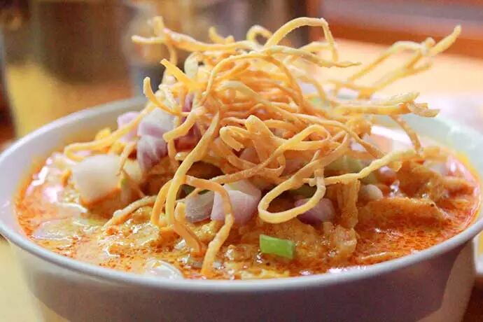 泰国的各种汤面几乎都有宽面、细面、油面、以及米粉四种选择。不过这些卖面的摊位又分成“猪肉面”、“鸡肉面”、“牛肉面”、“鸭肉面”、“鱼肉面”、“丸子面”、“叉烧馄饨面”等多种选择,通常猪肉面、鱼肉面、丸子面等都有清汤或酸辣两种汤头可供选择。