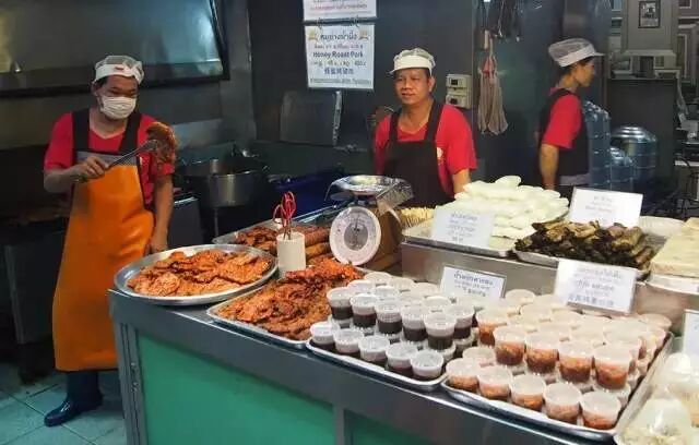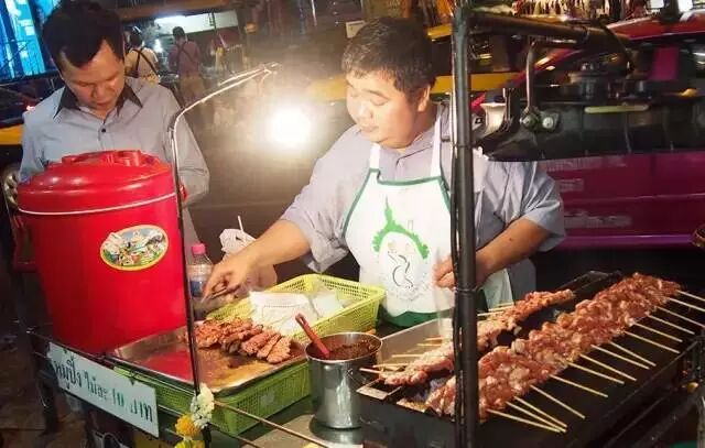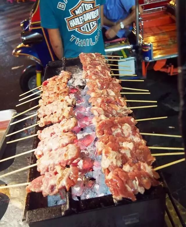 另外在在水门市场(Pratunam Market)也能找到不错的烤猪肉摊位。 Embassy)的档口白天也能吃到,每串20泰铢(约合人民币4元)。