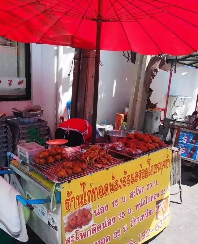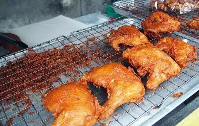 曼谷街头的炸鸡几乎随处可见,在曼谷水门市场(Pratunam alone),随随便便就能找到2-3个这样的炸鸡车。