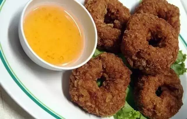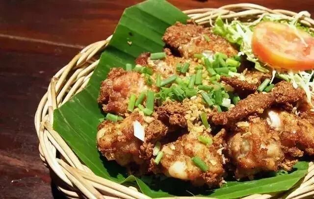 这种泰式炸鸡被称为Gai Tod,你可能第一口就会爱上它。好吃的秘诀在于腌料和面糊,面糊轻盈酥脆,但味道鲜美、口感清淡,散发着蒜味,比肯德基更容易上瘾。