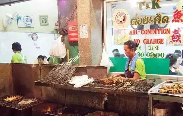 来这家店的必点菜包括烤老虎虾、冬阴功、牡蛎煎蛋,烤鱿鱼和炸虾糕。店内的工作人员都穿着绿色T恤方便识别。
