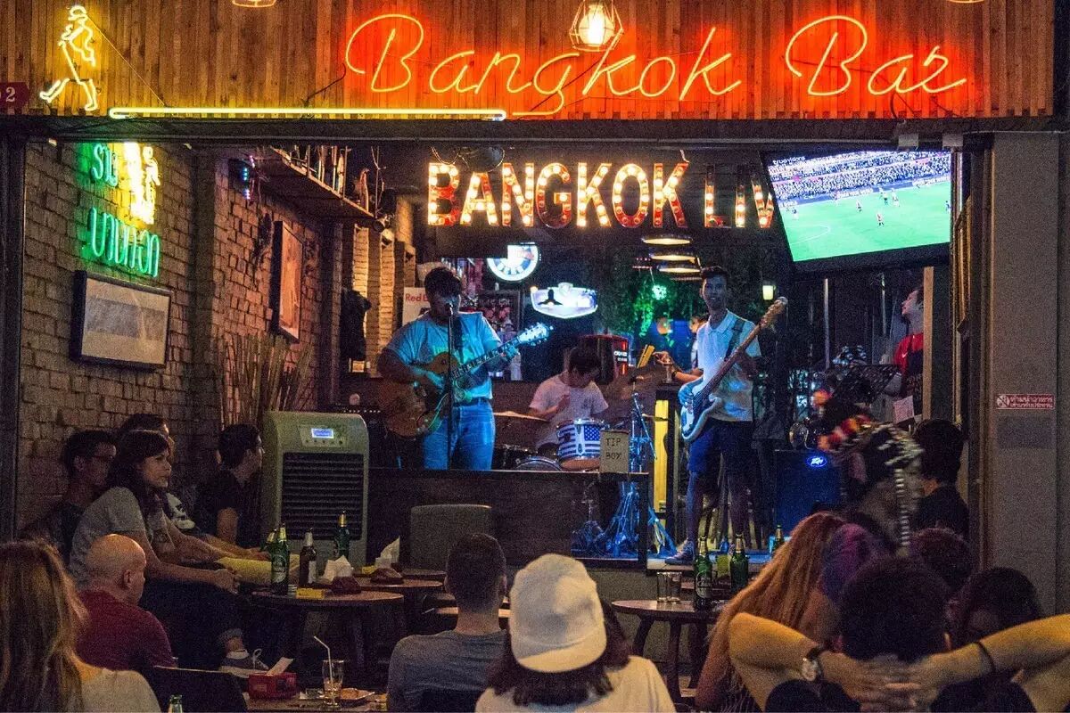 考山路两边全是酒吧,走在路上都能感觉到很欧洲的节奏。酒吧的消费也不贵,一瓶chang啤酒小瓶的大概50泰铢。一些露天酒吧还提供点菜,沙拉,炒饭……