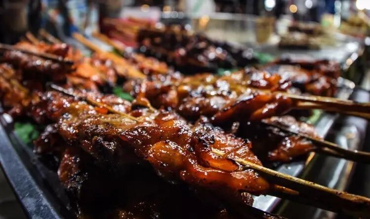 一路上烤肉摊非常多,味好量足,价格也便宜,10泰铢左右一串。