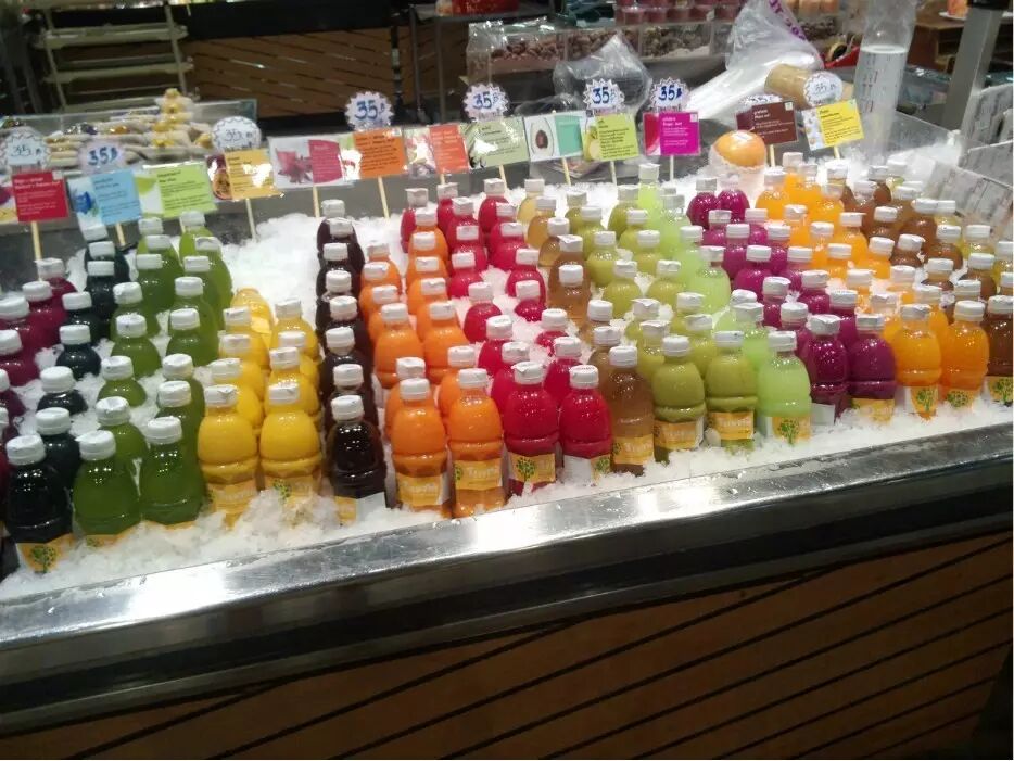 冰镇鲜榨水果饮料,五颜六色的,随你选。绝对不是色素哦!