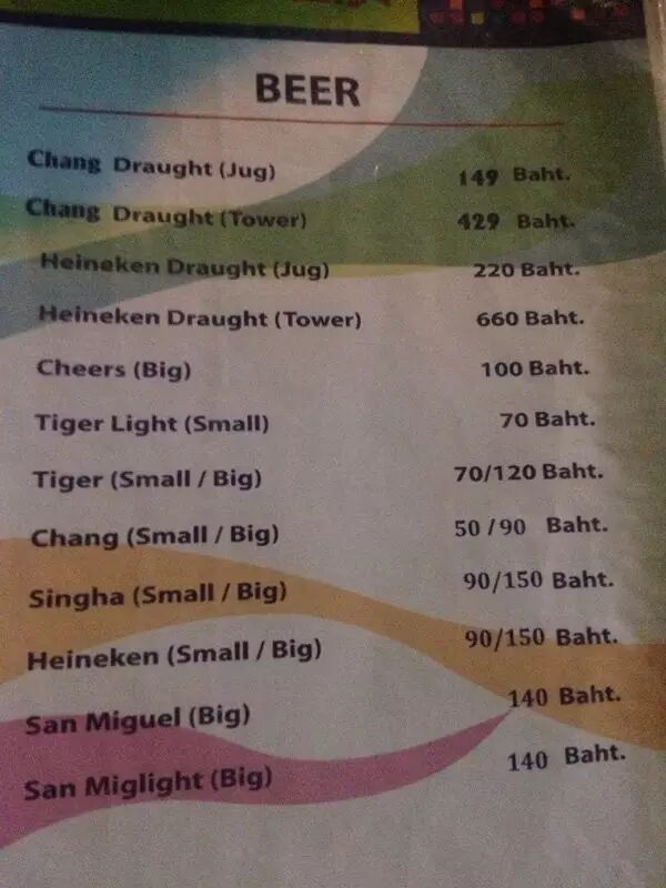 各个酒吧的啤酒价格都差不多,常见的国际品牌都有。放一些菜单实拍,免得大家担心宰客现象的出现。
