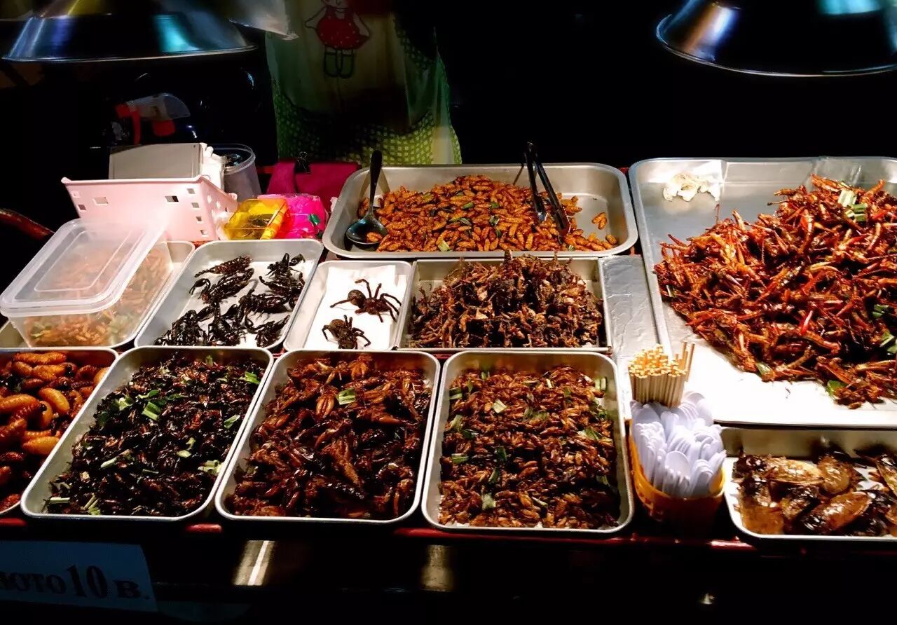 最能吃的你恐怕也要在这里认怂吧,各种虫子的焦黄尸体,反正吃不吃你随意,光拍照不买还得另收费10泰铢。