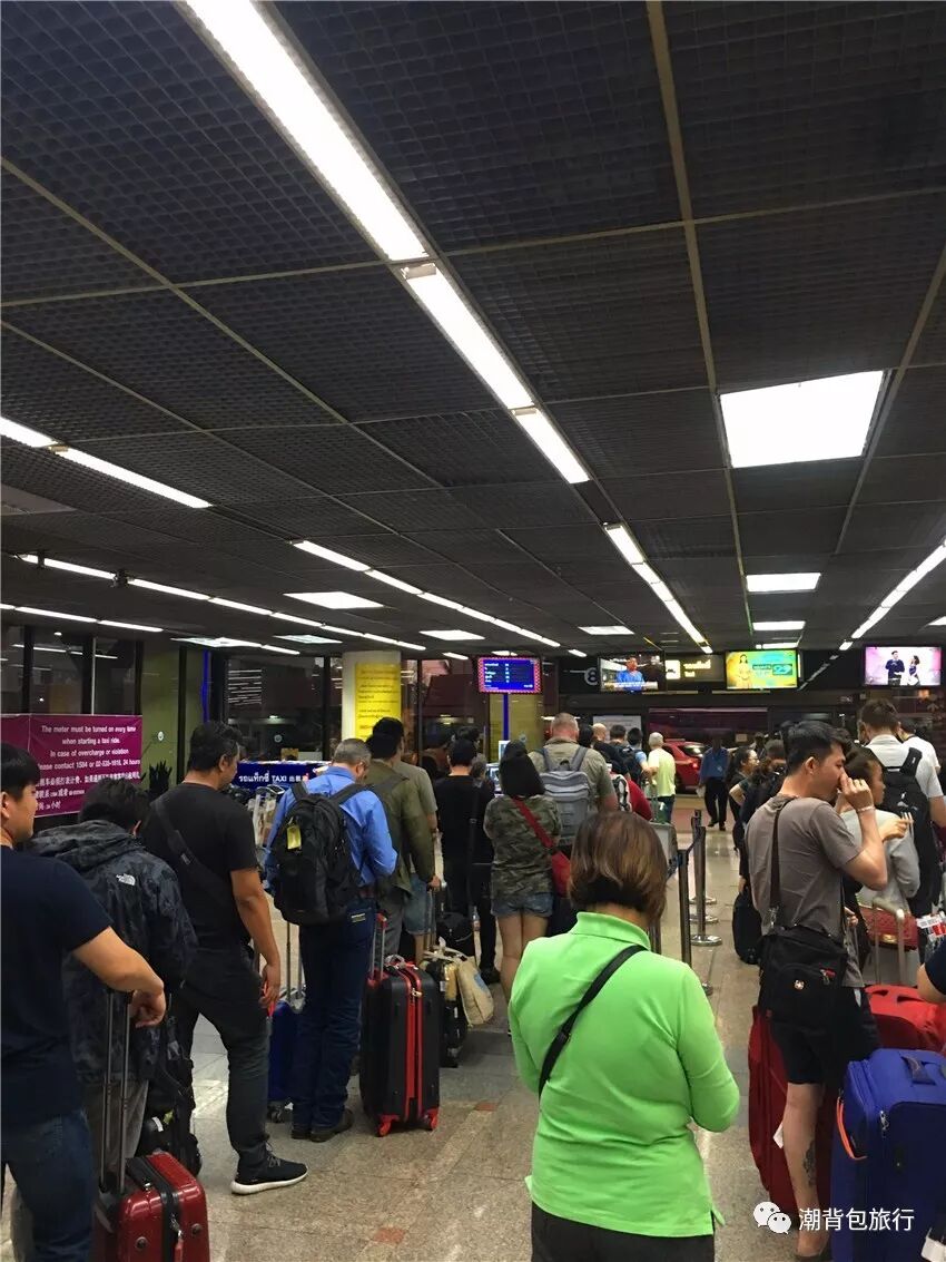 在泰国入境后,准备出机场。大家井然有序地排着队等出租车去酒店。